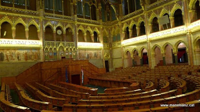 EL interior del Parlamento. Para poder acceder tienes que ir el mismo día a sus oficinas, puerta X hacer cola y una vez en taquilla pides hora dependiendo el idioma que desees oír al guía. Un espacio donde visitarás durante una hora el espacio del hemiciclo; la corona de Sant Esteban, las grandes escaleras y accesos a los pasillos llenos de historia.