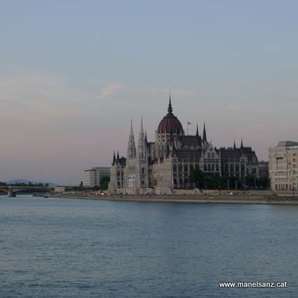 Mi cámara ha captado que el Danubio es azul. Al acabar el día es conveniente pasar a Buda para ver la arquitectura de los puente, de los palacios y las iglesias. ¿Pero que lado es Buda o Pest? Buda está en el margen derecho del Danubio. ¿Cómo podemos saber donde está el margen derecho o izquierdo? Pues esta es la explicación: Si nos imaginamos parados en el medio del río, mirando hacia donde corre el río, es decir mirando aguas abajo, la margen derecha es la orilla que se encuentra a nuestra derecha. Por lo tanto El Parlamento es Pest.